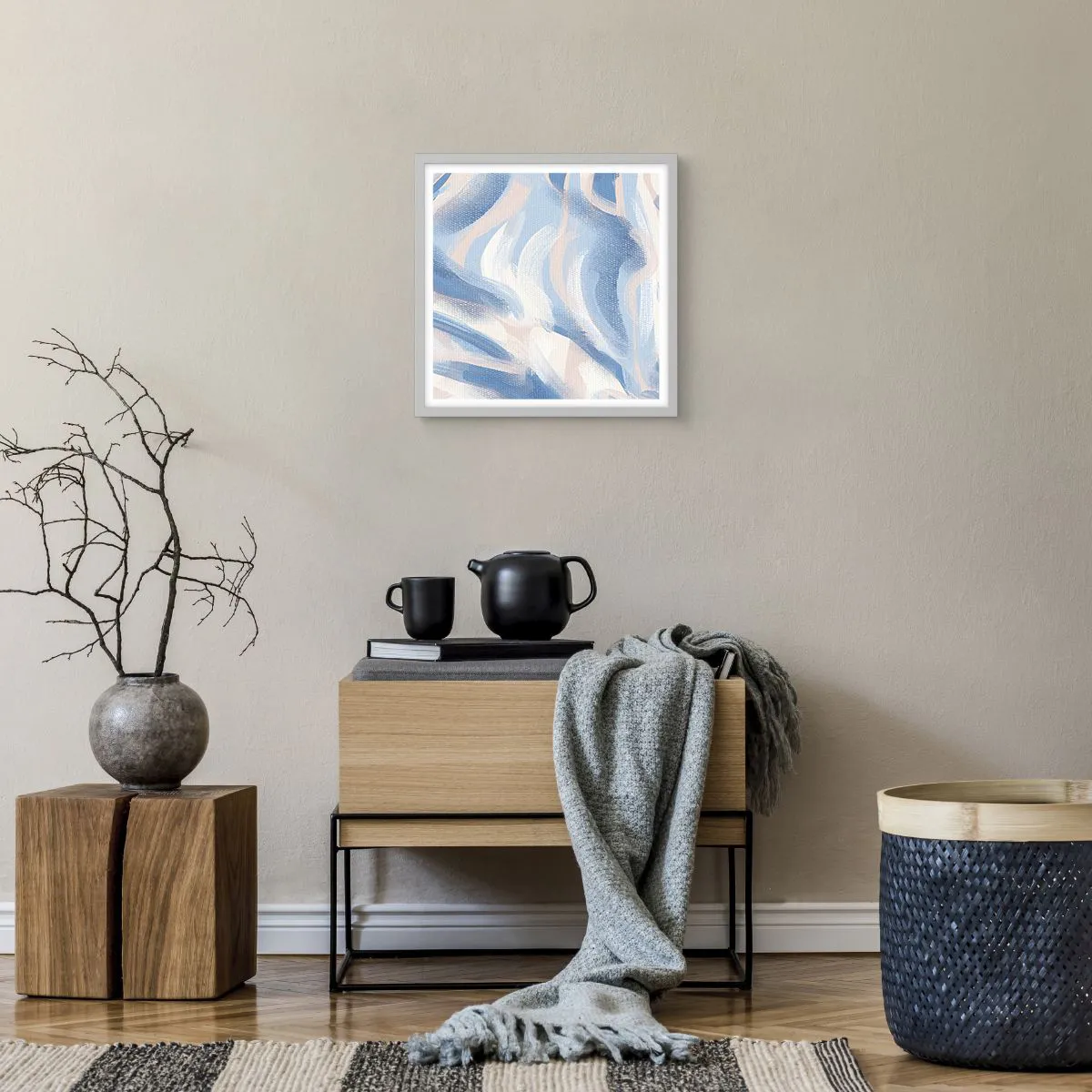 Affiche dans un cadre blanc - Poster - Vagues bleues - 40x40 cm