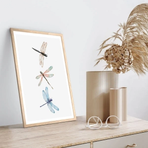 Affiche dans un chêne clair - Poster - Libellules en apesanteur - 70x100 cm