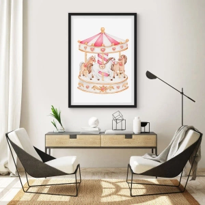 • Carrousel, Girly, Chevaux, Pour les enfants, Pastel, Vintage et rétro, Pour la chambre des enfants Blanc, Rose, Carré