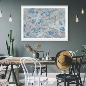 Affiche dans un cadre blanc - Poster - Dans un labyrinthe bleu-gris - 60x60 cm