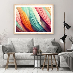 Affiche dans un chêne clair - Poster - Tissage arc-en-ciel - 40x30 cm