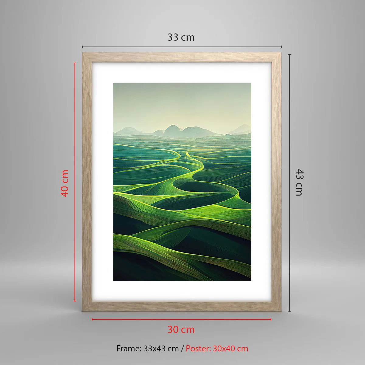 Affiche dans un chêne clair - Poster - Dans les vallées verdoyantes - 30x40 cm