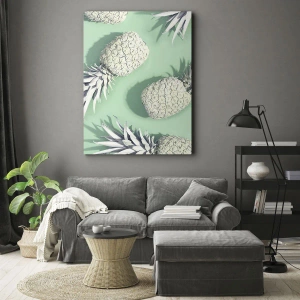 • Abstrait, Ananas, Art, Gastronomie, Pastel, Pour la salle à manger, Pour la cuisine Blanc vert, Carré