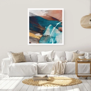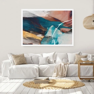 Affiche - Poster - Abstraction expressive dans les tons de bleu et d'or - 50x70cm - Avec panache et énergie - Décoration murale moderne pour le salon et la chambre ARTTOR