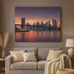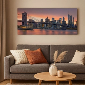 Le tableau « Immergé dans un silence lilas » est une œuvre d'art unique qui capture la beauté du paysage urbain nocturne. Il représente le panorama de la ville avec un impressionnant pont s'étendant sur la rivière, illuminé par des lumières chaudes. Le ciel sombre et la lueur subtile du soleil couchant créent une ambiance chaleureuse qui apporte paix et élégance exceptionnelle à votre intérieur.