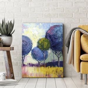 Impression sur toile - Image sur toile - Arbres colorés en forme de boule sur fond de paysage - 160x50cm - Sphère - la forme idéale - Décoration murale moderne pour le salon et la chambre ARTTOR
