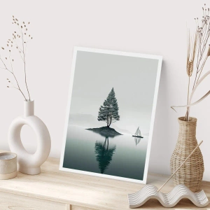 Affiche - Poster - Un arbre solitaire sur une île avec un reflet dans l'eau - 50x70cm - Un rêve somnolent - Décoration murale moderne pour le salon et la chambre ARTTOR