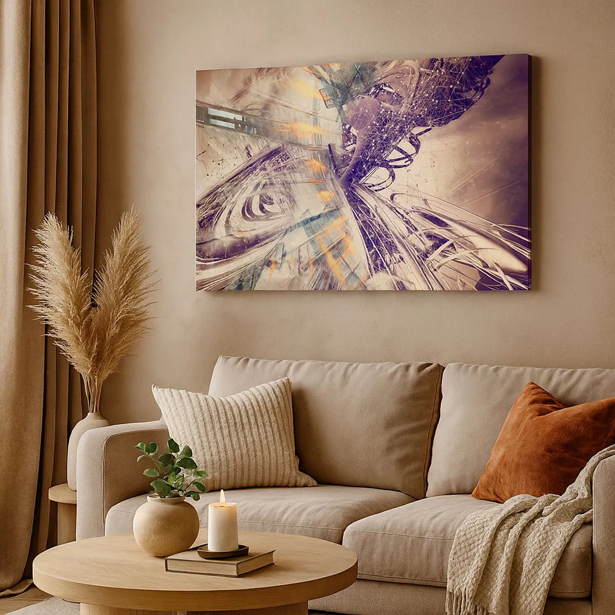 Impression sur toile - Image sur toile - Abstraction dynamique dans les tons beige et violet - 70x50cm - En grande hâte - Décoration murale moderne pour le salon et la chambre ARTTOR