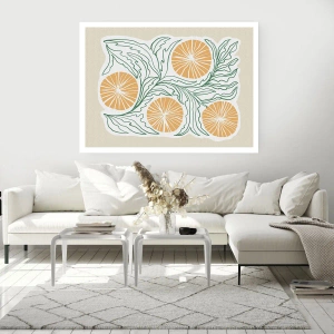 Affiche - Poster - Un motif orange minimaliste avec des feuilles vertes - 100x70cm - Ethnique avec une pointe d'abstraction - Décoration murale moderne pour le salon et la chambre ARTTOR