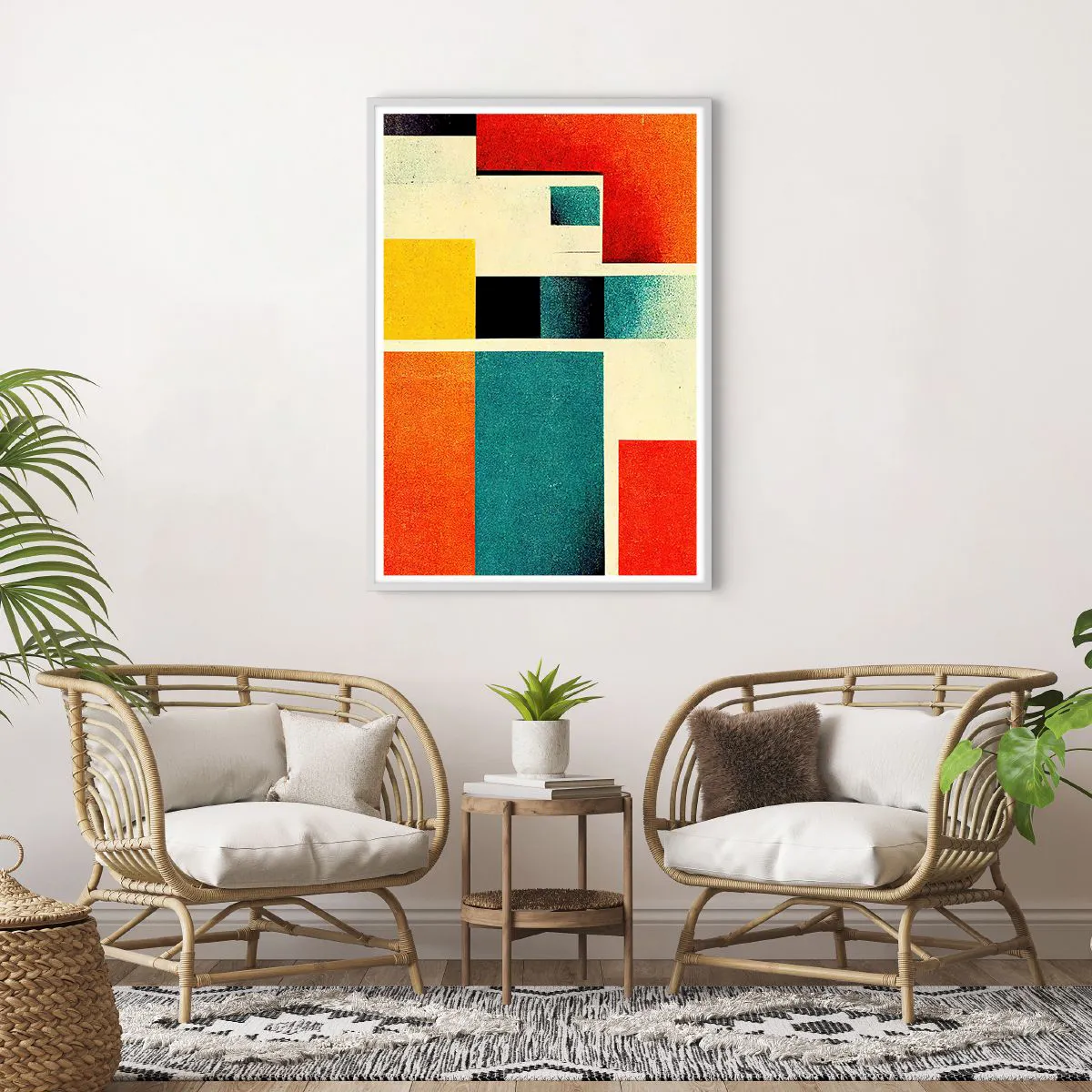 Affiche dans un cadre blanc - Poster - Abstraction géométrique – bonne énergie - 70x100 cm