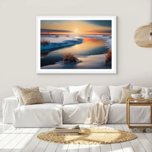 Affiche dans un cadre blanc - Poster - Coucher de soleil d'hiver - 100x70 cm
