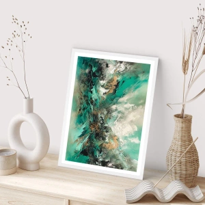 Affiche dans un cadre blanc - Poster - Ressac émeraude et noir - 50x70 cm