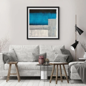 Affiche dans un cadre noir - Poster - Une composition poétique de gris et de bleu - 30x30 cm