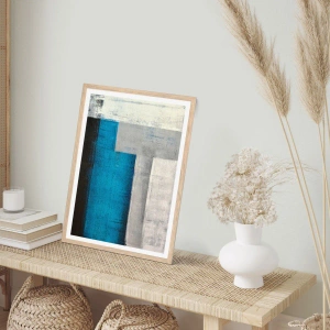 Affiche dans un chêne clair - Poster - Une composition poétique de gris et de bleu - 50x40 cm