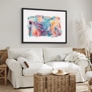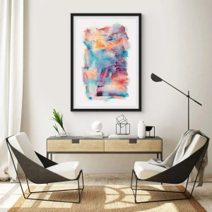 Affiche dans un cadre noir - Poster - Coups de pinceau colorés dans une composition abstraite - 70x50cm - Un désordre coloré - Décoration murale moderne pour le salon et la chambre ARTTOR