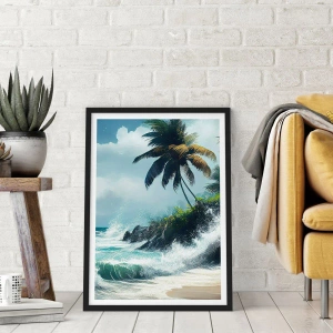 Affiche dans un cadre noir - Poster - Plage tropicale avec palmiers et océan agité - 50x70cm - Sur une côte tropicale - Décoration murale moderne pour le salon et la chambre ARTTOR