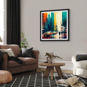 Affiche dans un cadre noir - Poster - New York – ici même la pluie est colorée - 70x100 cm
