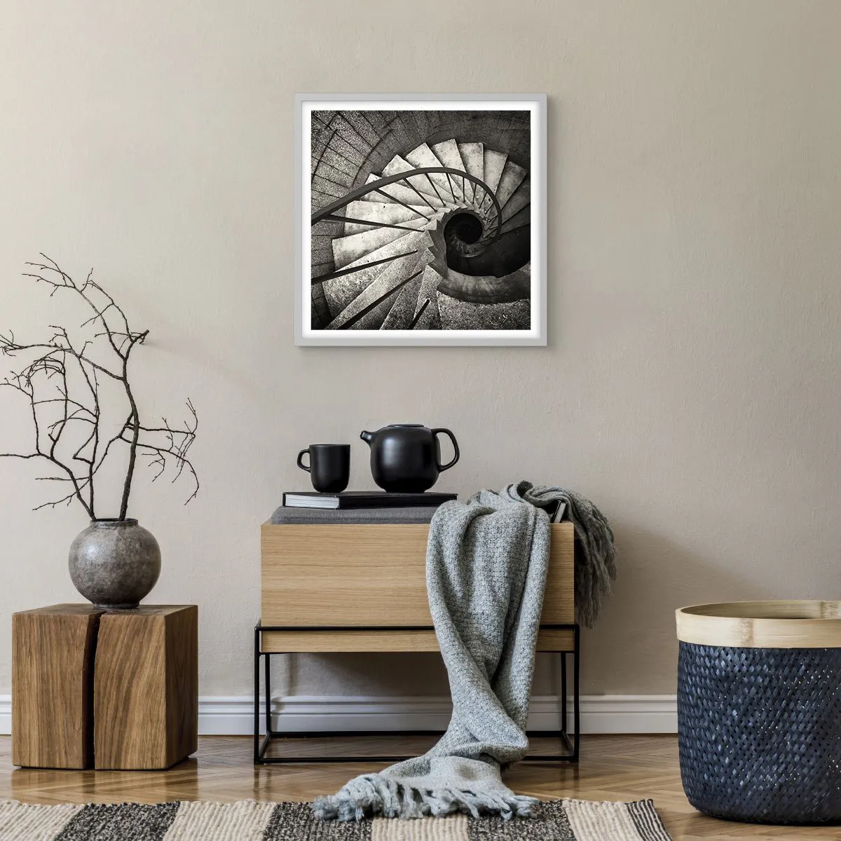 Affiche dans un cadre blanc - Poster - En haut des escaliers, en bas des escaliers - 50x50 cm