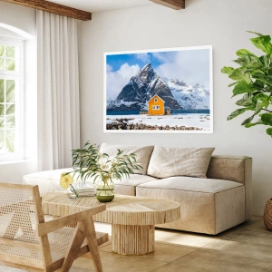 Affiche - Poster - Une maison jaune sur fond de montagnes enneigées - 50x70cm - Vacances scandinaves - Décoration murale moderne pour le salon et la chambre ARTTOR
