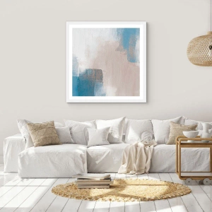 Affiche dans un cadre blanc - Poster - Abstraction rose derrière un rideau de bleu - 40x50 cm