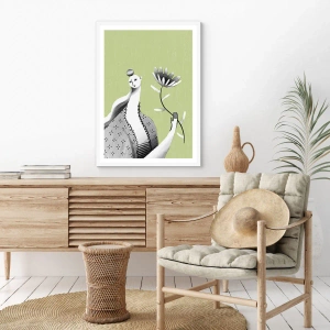 Affiche dans un cadre blanc - Poster - Portrait moderniste – tenant une fleur - 50x70 cm