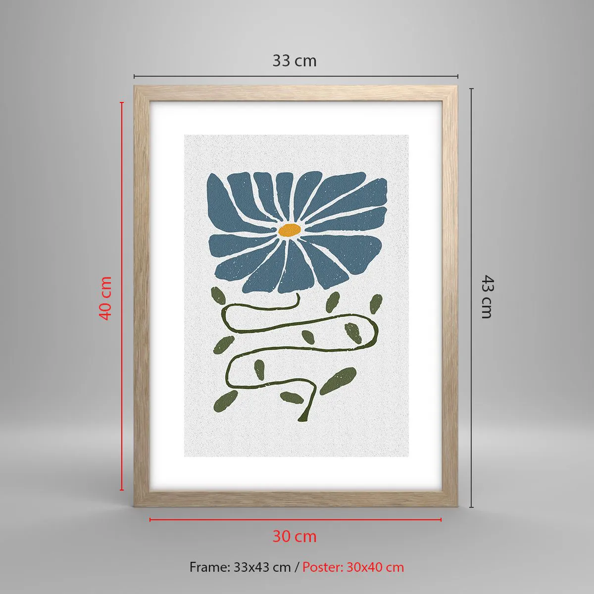 Affiche dans un chêne clair - Poster - Une branche à une fleur - 30x40 cm