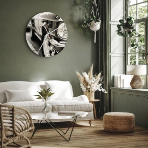 L'horloge est produite avec un verre de sécurité de 4 mm d'épaisseur. La technologie de fabrication de l'horloge est conforme à la classe de sécurité 2B2 selon la norme PN-EN 12600 : 2004, qui garantit la résistance aux chocs. L'horloge en verre est prête à être accrochée - elle a une attache en métal attaché à l'arrière et une entretoise en mousse régulant la distance uniformément de l'horloge par rapport au mur. L'horloge a un mécanisme flottant silencieux alimenté par une pile 1.5V - pile AA (pile non incluse).