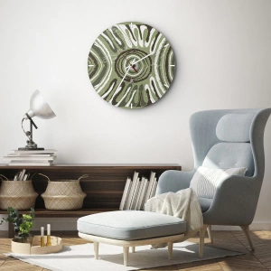 Horloge murale - Pendule murale - Motifs abstraits dans les tons de vert et de marron - 30x30cm - Une explosion d'émotions - Décoration murale moderne pour le salon et la chambre ARTTOR