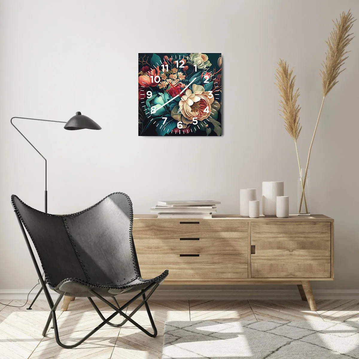 L'horloge est fabriquée en verre durable de 4 mm d'épaisseur. Le verre conserve les couleurs naturelles de l'impression