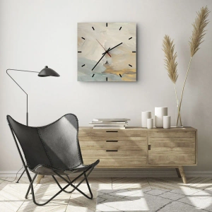 Horloge murale - Pendule murale - Traits abstraits délicats dans des tons de blanc et d'or - 30x30cm - Abstraction – le pays de la douceur - Décoration murale moderne pour le salon et la chambre ARTTOR