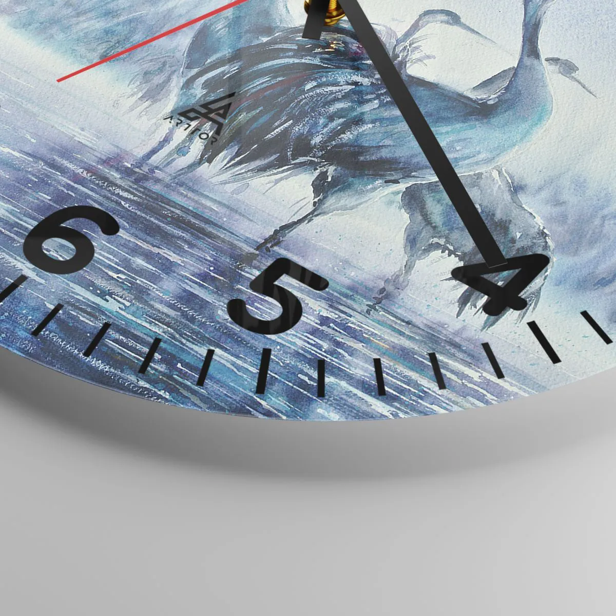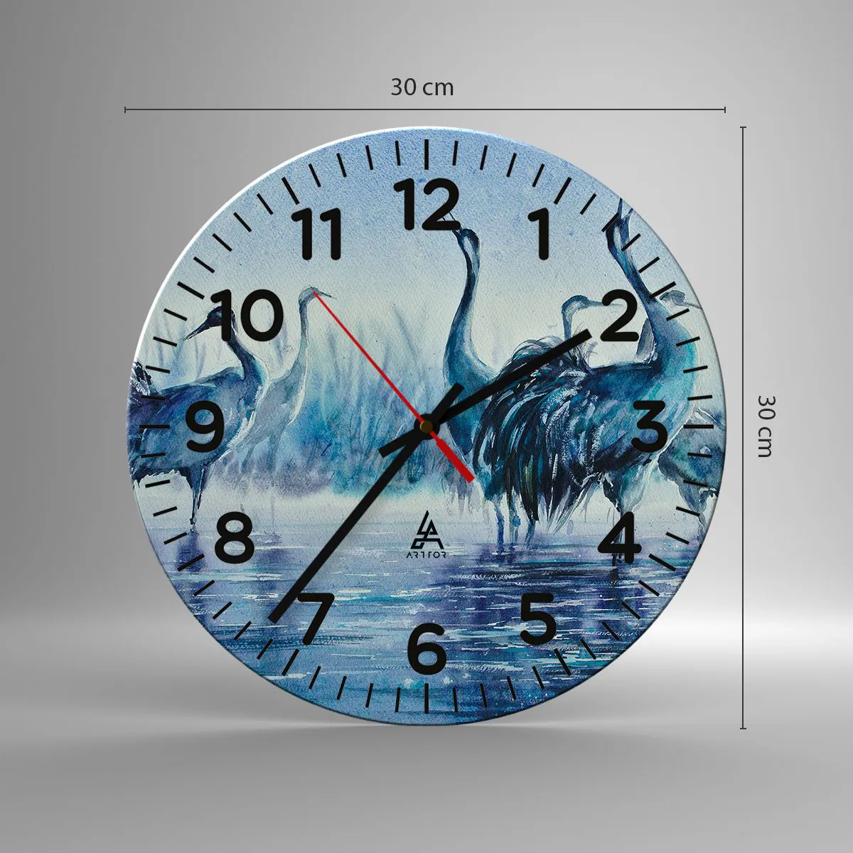 L'horloge est produite avec un verre de sécurité de 4 mm d'épaisseur. La technologie de fabrication de l'horloge est conforme à la classe de sécurité 2B2 selon la norme PN-EN 12600 : 2004, qui garantit la résistance aux chocs. L'horloge en verre est prête à être accrochée - elle a une attache en métal attaché à l'arrière et une entretoise en mousse régulant la distance uniformément de l'horloge par rapport au mur. L'horloge a un mécanisme flottant silencieux alimenté par une pile 1.5V - pile AA (pile non incluse).