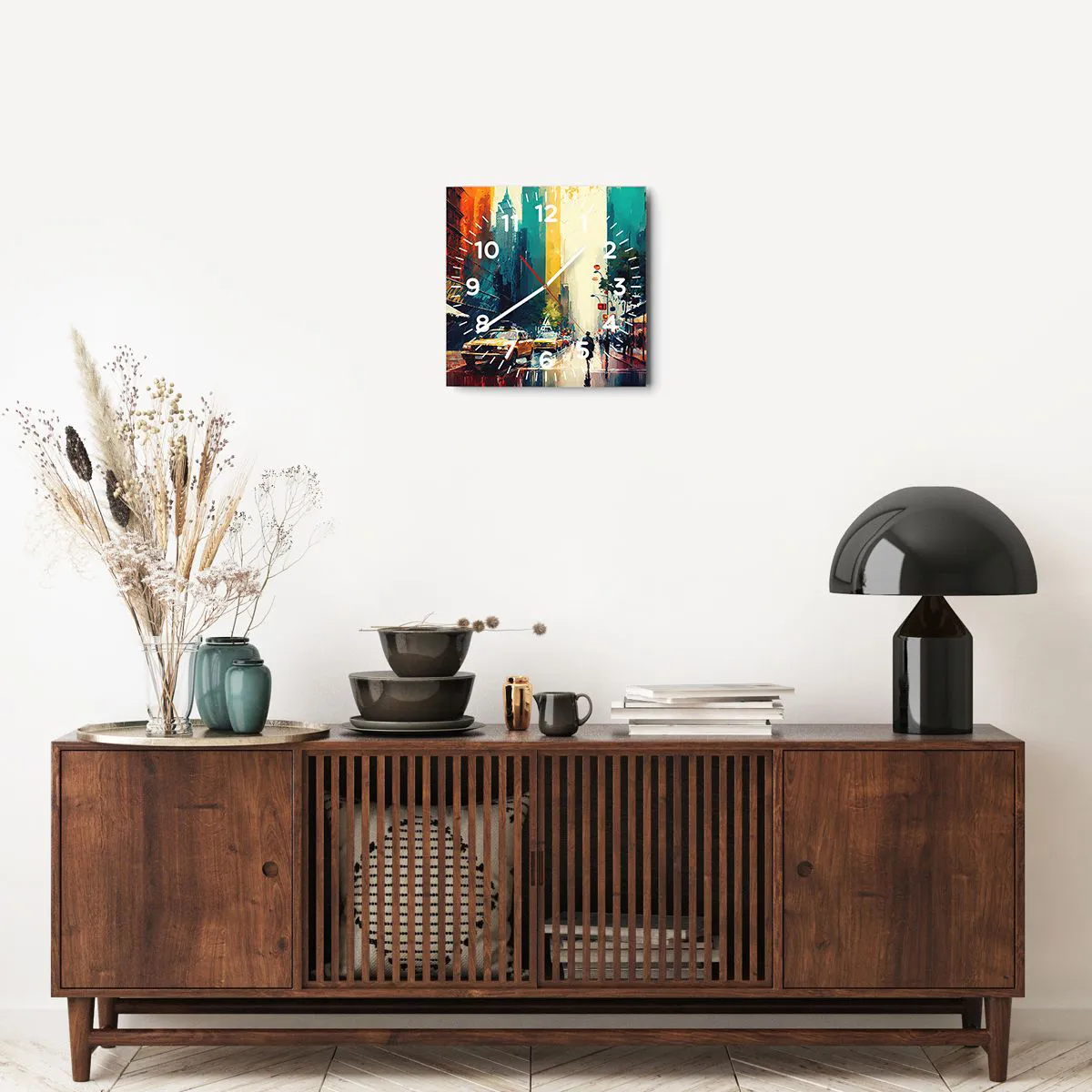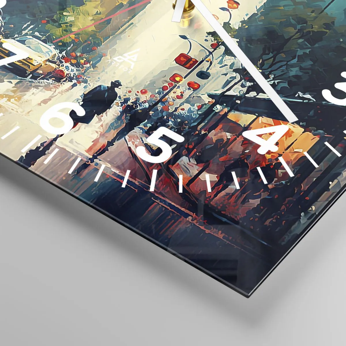L'horloge est fabriquée à l'aide de technologies d'impression modernes, qui garantissent la préservation des couleurs naturelles et une saturation élevée des couleurs. La production d'horloges sur verre se déroule en plusieurs étapes. Une impression de haute qualité et deux couches de protection thermique liées au verre. Pour cela, nous utilisons la technologie innovante des fours de laminage du verre dans un environnement sous vide.