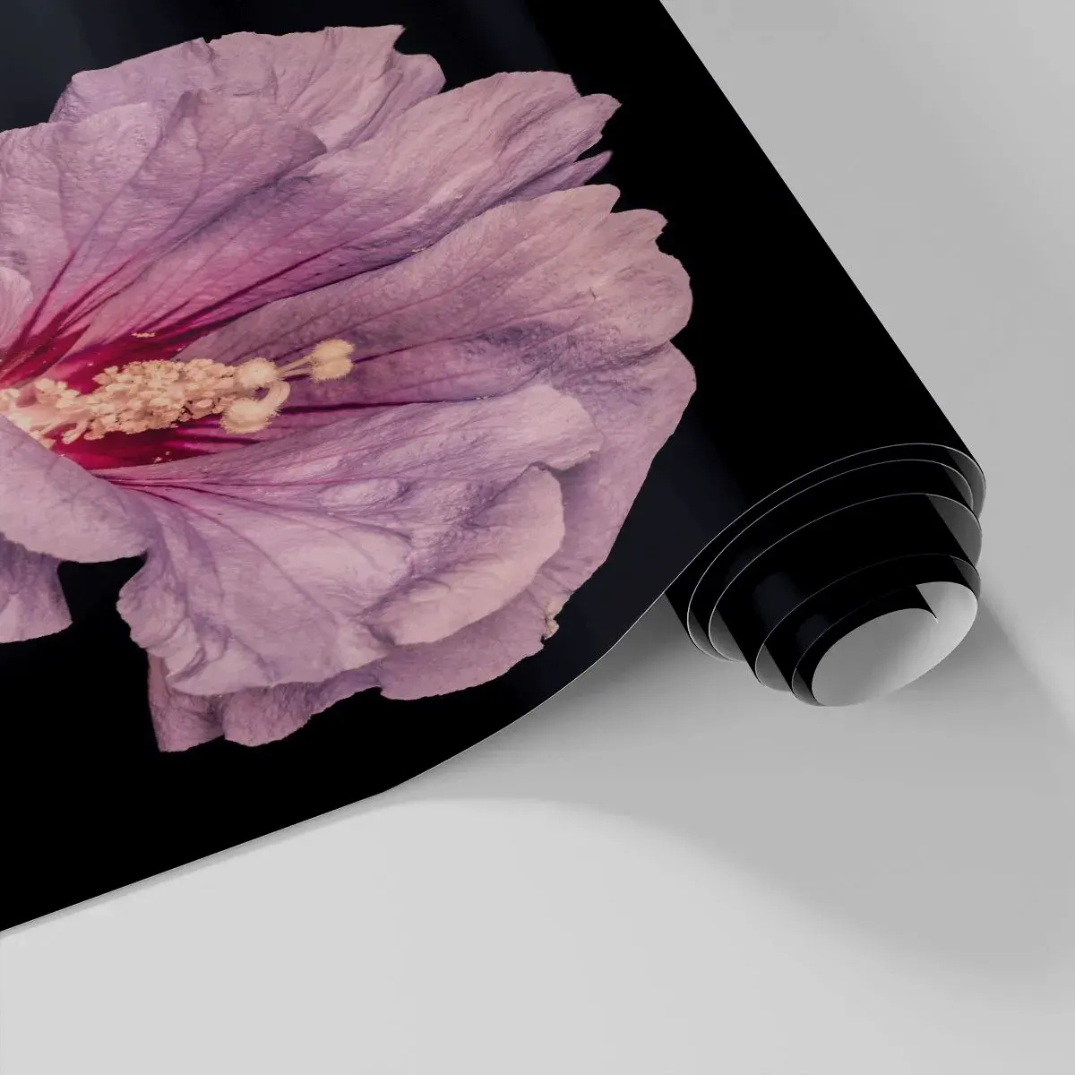 « Droit au cœur » est un élégant papier peint photo représentant la beauté subtile d'un hibiscus. La fleur rose sur fond noir crée un effet visuel unique, soulignant sa délicatesse et son esthétique naturelle. Le contraste entre la couleur intense des pétales et le fond noir profond confère à la composition un style distinctif et moderne.
