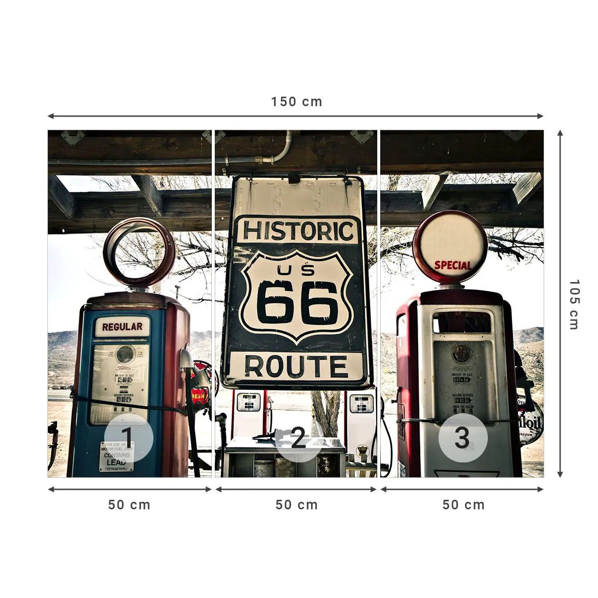 Papier Peint Photo Premium Sand - Voyage rétro américain - Ancien, Route 66, Route 66 - 150x105 cm
