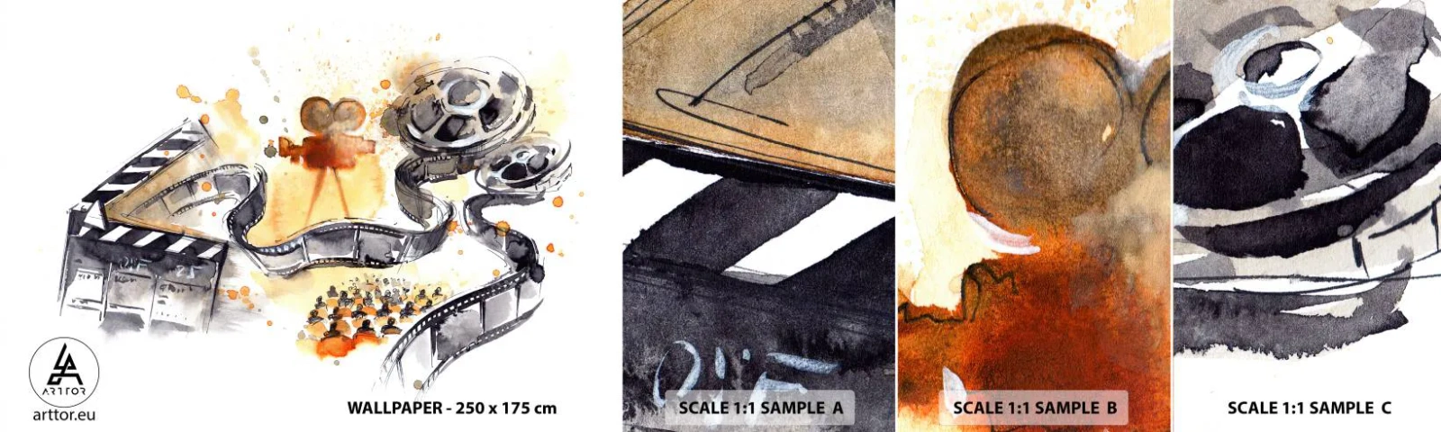 Échantillon De Papier Peint Standard Eco - Au pays des rêves - Projecteur de film, Bobine de film, Cinématographie - 100x30 cm