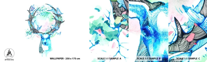 Échantillon De Papier Peint Standard Eco - La force et la délicatesse de la nature - Abstraction, Cerf, Nature - 100x30 cm