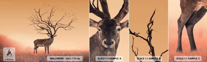 Échantillon De Papier Peint Standard Eco - Cerf de Pra - l'esprit éternel de la forêt - Abstraction, Cerf, Nature - 100x30 cm