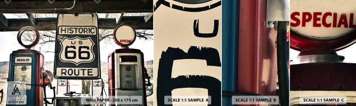 Échantillon De Papier Peint Standard Eco - Voyage rétro américain - Ancien, Route 66, Route 66 - 100x30 cm