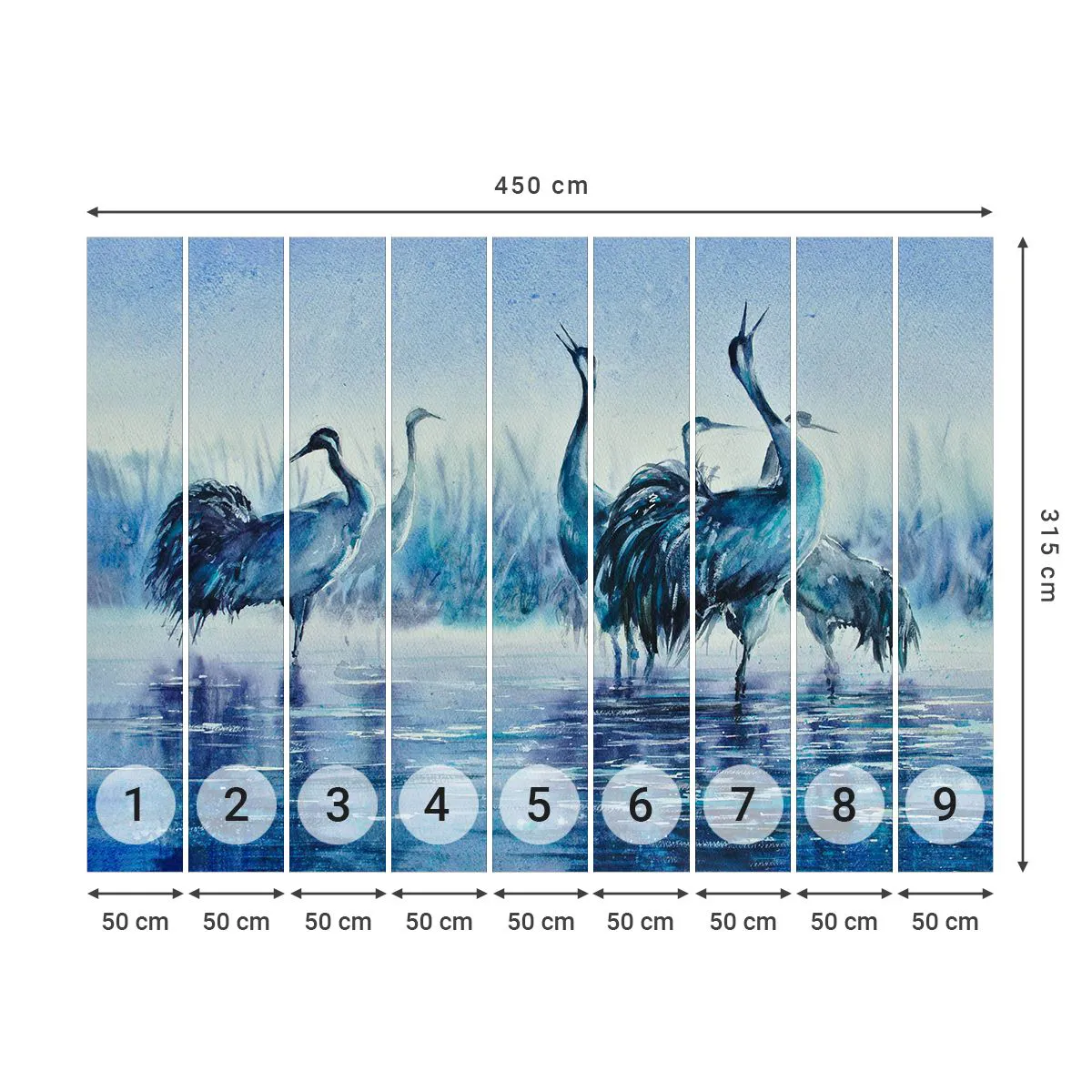 Papier Peint Photo Premium Canvas - Réunion matinale - Des oiseaux, Paysage, Eau - 450x315 cm