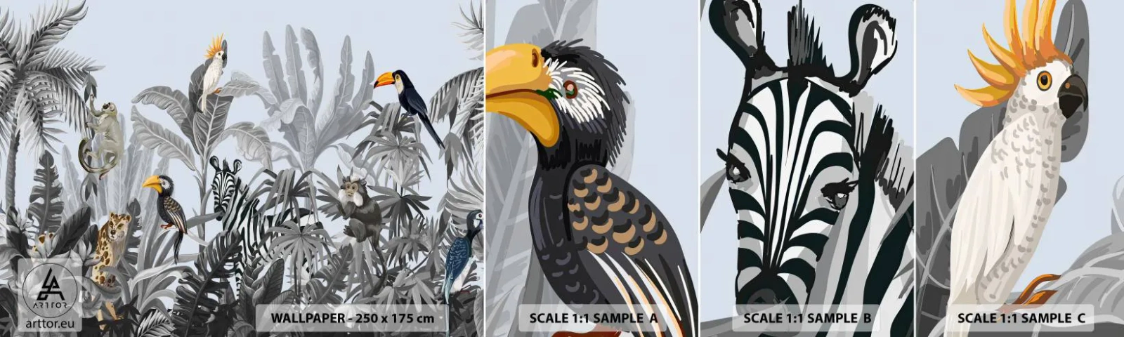 Échantillon De Papier Peint Standard Eco - Conte de fées africain - Abstraction, Jungle, Animaux - 100x30 cm