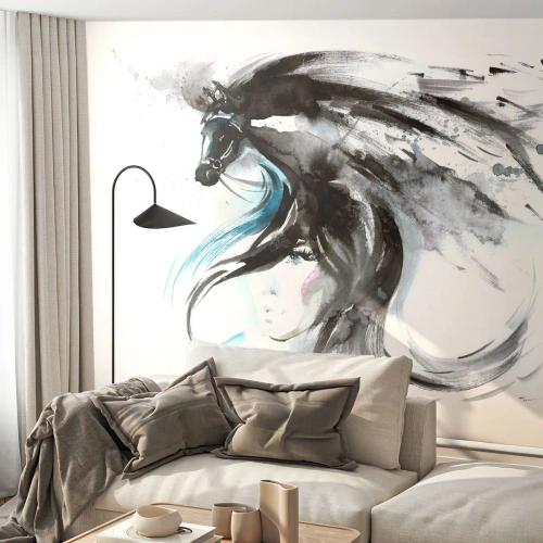 Papier Peint Photo Standard Eco - Galop du prince noir - Animaux, Cheval, Graphique - 300x210 cm