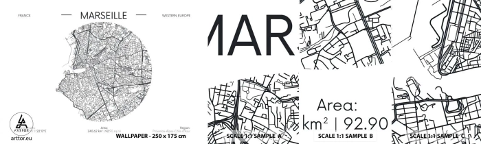 Échantillon De Papier Peint Standard Eco - Anatomie de Marseille - Carte, Marseille, France - 100x30 cm