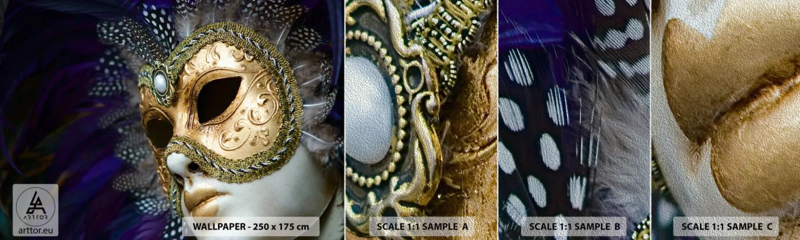 Échantillon de Papier Peint Premium Sand - Portrait vénitien en or - Capot, Morceau, Venise - 100x30 cm