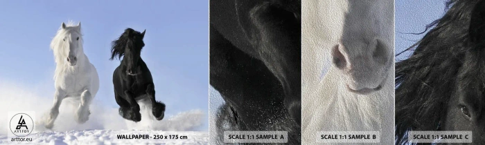 Échantillon de Papier Peint Premium Sand - Galop noir et blanc - Animaux, Cheval, Hiver - 100x30 cm