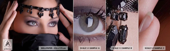 Échantillon de Papier Peint Premium Sand - Tentation de mystère oriental - Femme, Yeux, Culture - 100x30 cm