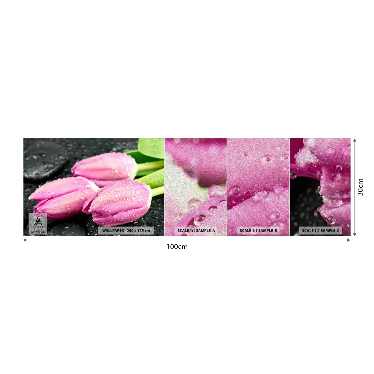 Échantillon de Papier Peint Premium Sand - Lilas trois sur une pierre noire - Fleurs, Tulipes, Bouquet de fleurs - 100x30 cm