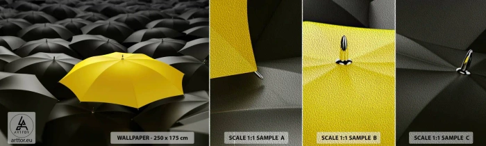 Échantillon de Papier Peint Premium Sand - Adieu chagrin - Parapluies jaunes, Graphique, Concept - 100x30 cm