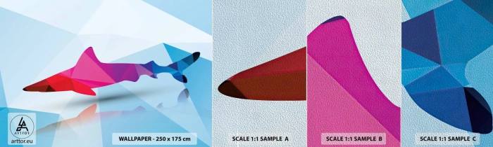 Échantillon de Papier Peint Premium Sand - Un requin dans un espace de cristal - Animaux, Requin, Figure géométrique - 100x30 cm