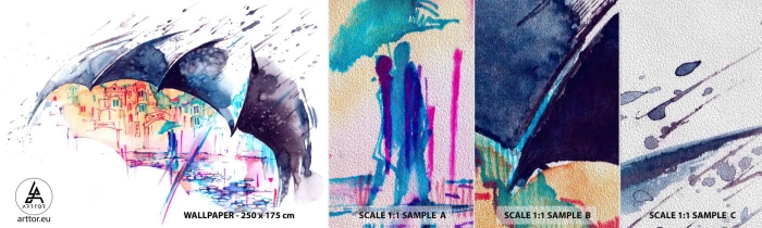 Échantillon de Papier Peint Premium Sand - Se promener sous la pluie - Abstraction, Parapluie, Architecture - 100x30 cm