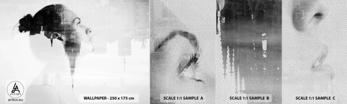 Échantillon de Papier Peint Premium Sand - Des deux côtés du verre - Abstraction, Visage de femme, Architecture - 100x30 cm